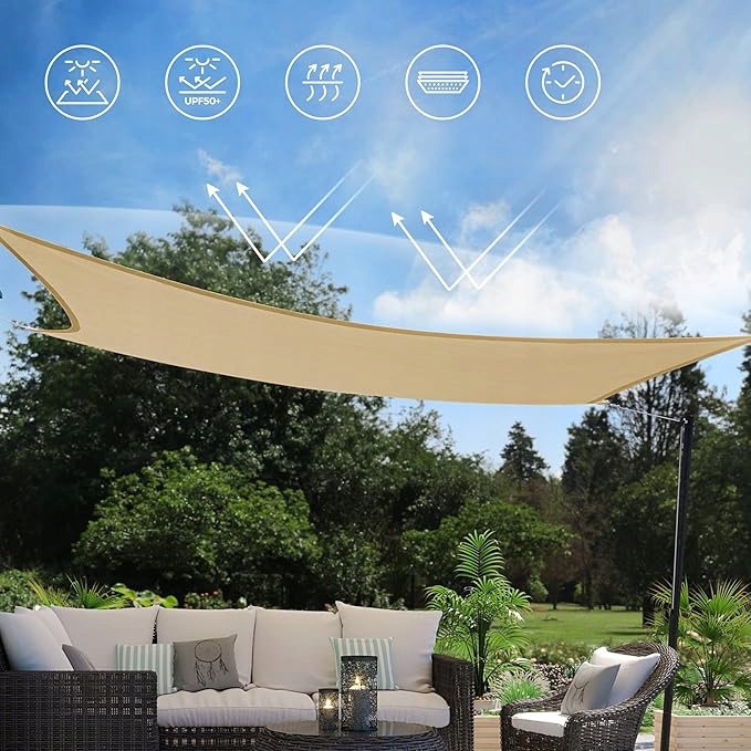 Elegancki żagiel przeciwsłoneczny to doskonałe rozwiązanie do ogrodu, na taras czy pergolę. Zapewnia aż 90% zacienienia, chroniąc przed słońcem i szkodliwym promieniowaniem UV (30+ SPF). Wykonany z trwałego polieterosulfonu, jest odporny na warunki atmosferyczne i zapewnia długą żywotność.